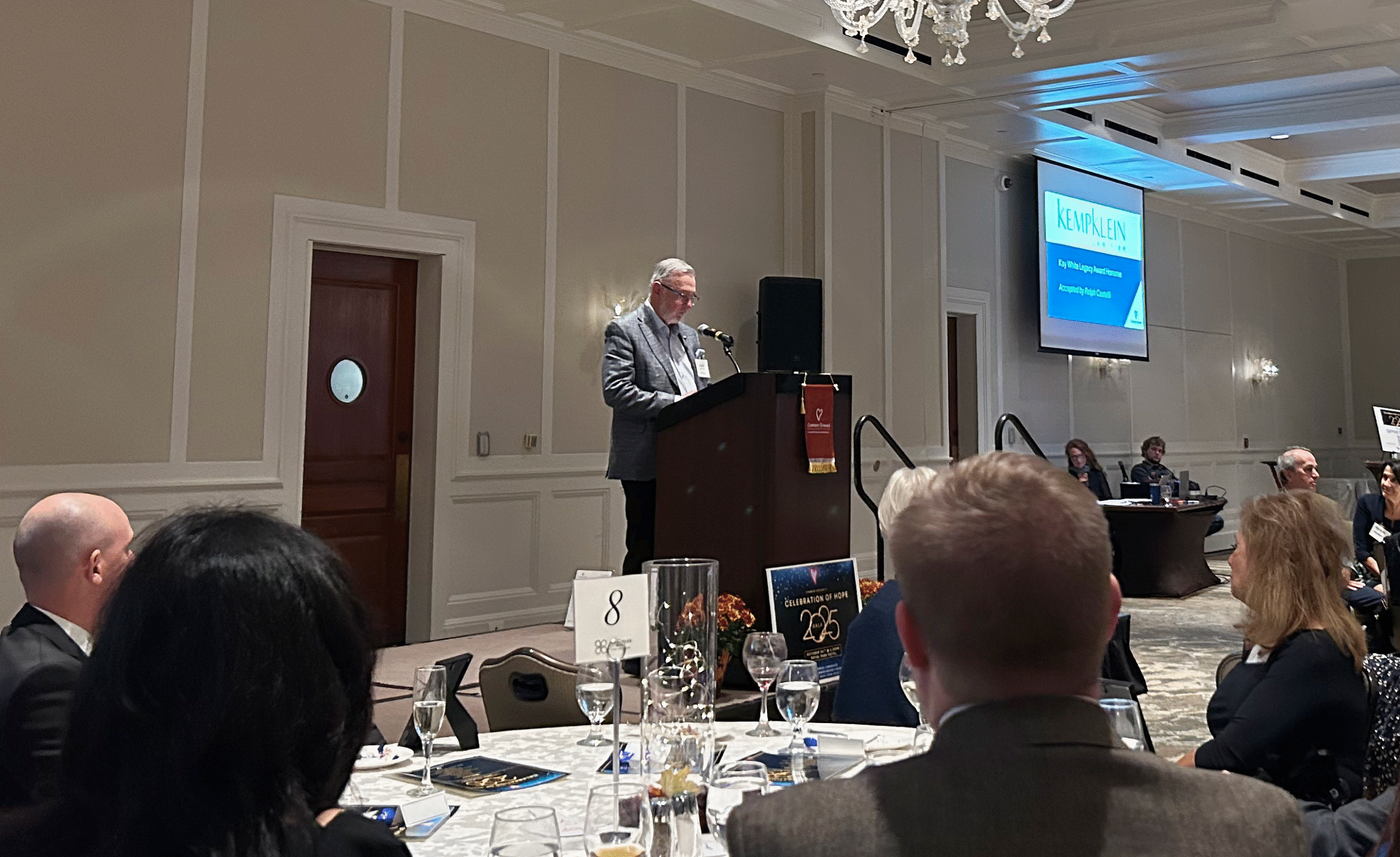Kemp Klein was honored by Common Ground with the Kay White Legacy Award at the Celebration of Hope Gala. Ralph Castelli, CEO Emeritus, accepted the award on behalf of the firm.