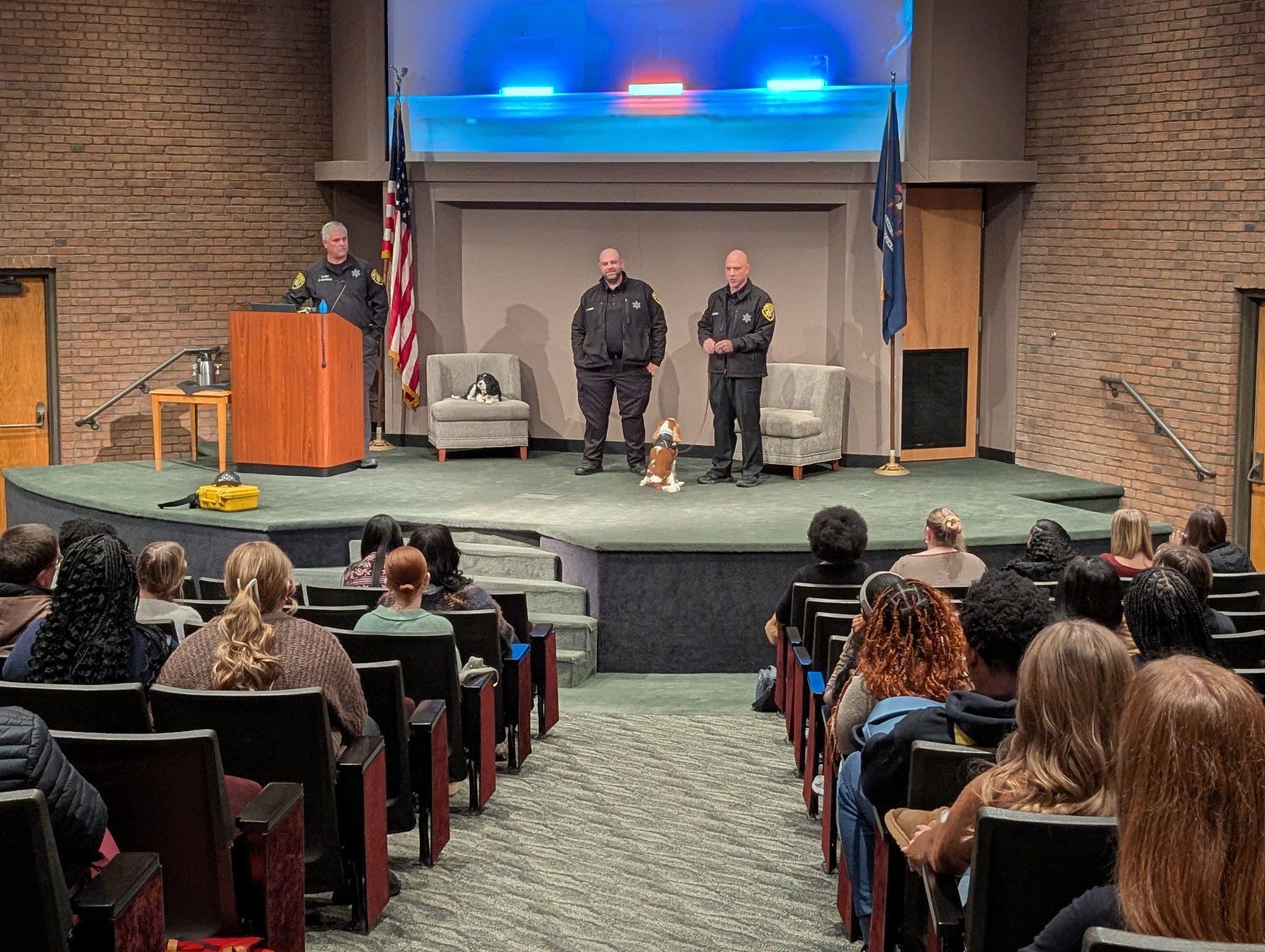 The keynote speaker was Oakland County Circuit Court Judge Kwamé L. Rowe. Topics discussed included the roles and responsibilities of a judge, pathways to a legal career, searches, seizures, student rights, and an opportunity to meet the Oakland County Sheriff’s K9 and comfort dogs.